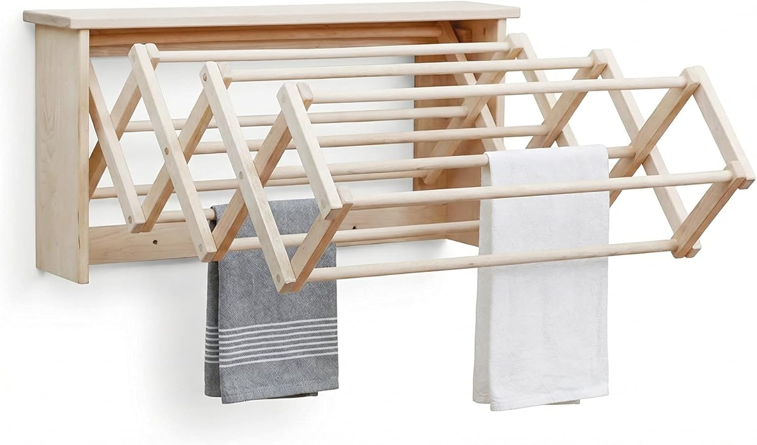 The Bigger, Stronger Drying Rack, Hand-Built by American Craftsmen Had it with those flimsy drying racks that tip over at the drop of a shirt? Move up to Pennsylvania Woodworks. Our collapsible rack comes in rock-solid maple, one of the strongest hardwoods around. What's more, this heavy-duty, pre-assembled stand: *Provides a full 11 feet of drying space *Safely holds heavy laundry loads - everything from soft, dainty sweaters to big, bulky towels & blankets *Has rugged 3/4x1/2-inch square dowels for added strength & stability *Collapses to 6" x 2s" x 2 1/2" for compact storage anywhere *To be used indoors for fresh, healthy air drying Handcrafted in Pennsylvania Designed to last a lifetime, your portable rack is built by American woodworkers right here in the USA. Count on it for years of use... even pass it down to your kids. Plus, feel free to use it for more than just your laundry. With its heirloom-quality workmanship, it makes a perfect display rack for your favorite quilts & throws. Add to Cart for Yourself & Your Gift List Why settle for a cheap, chintzy indoor clothes drying rack that could fall apart in mere months? Order your rugged Pennsylvania Woodworkers Clothes Drying Rack right now.